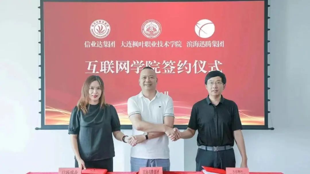 8月17日,大连枫叶职业技术学院与天津滨海迅腾科技集团有限公司签约,双方共同在信业达中日产教融合教育基地合作共建大连枫叶职业技术学院互联网学院暨迅腾产业学院,进一步深化产教融合,创新人才培育模式,赋能学院高质量发展。