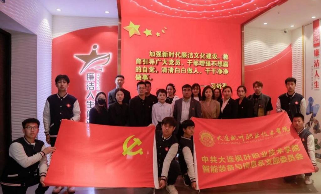 为进一步加强新时代廉洁文化建设,牢记党性宗旨和使命初心。5月15日上午,大连枫叶职业技术学院智能装备与信息系党支部党员教师和23级入党积极分子,赴中山区廉洁人生体验馆开展廉洁文化主题党日活动,体验一场别开生面的廉洁文化教育。