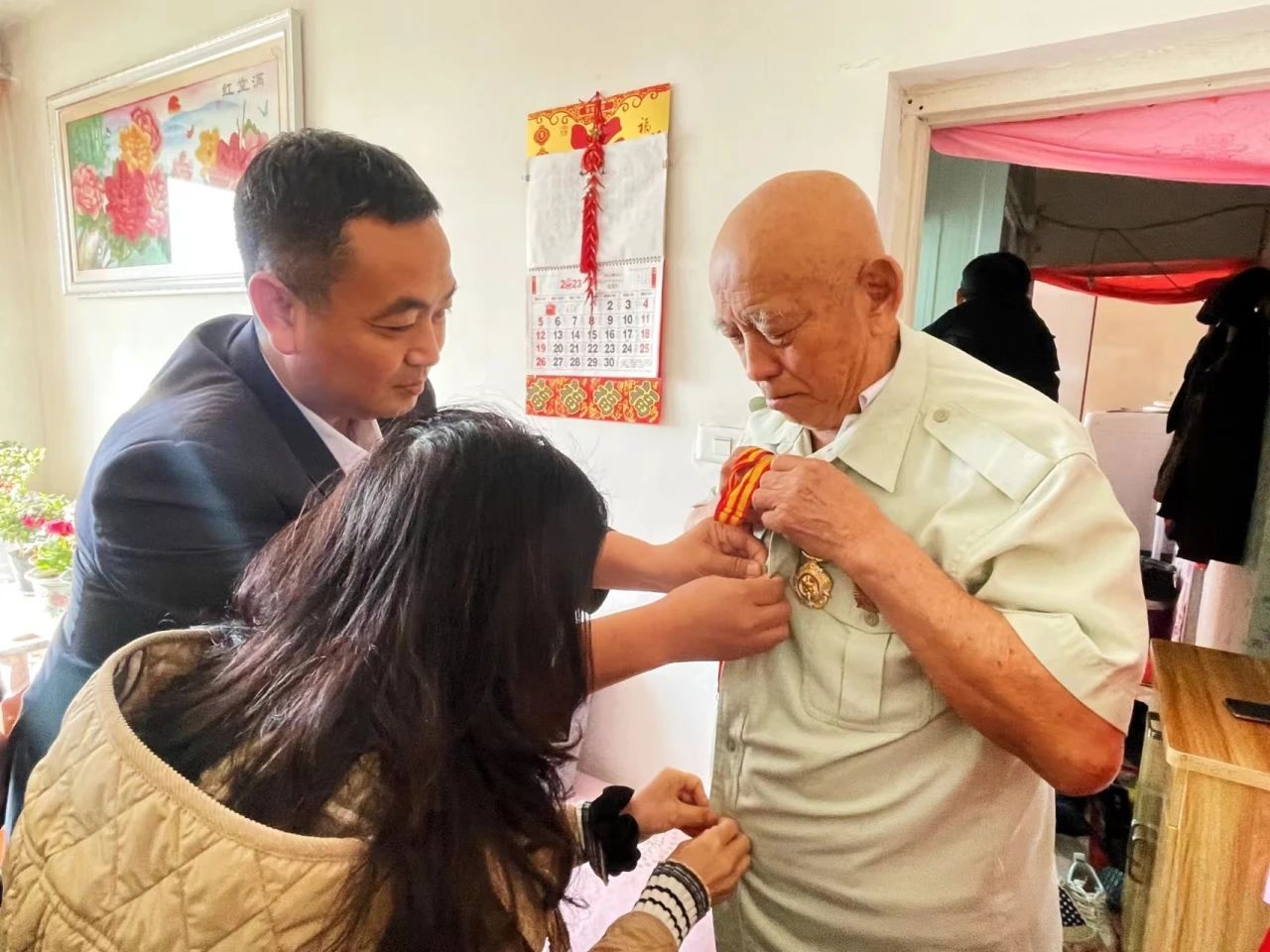 近日,中职部党支部书记徐凤龙同志和退伍军人范大振带领本校党员教师慰问抗美援朝老兵,一同向老兵致以崇高的敬意和诚挚的祝福。