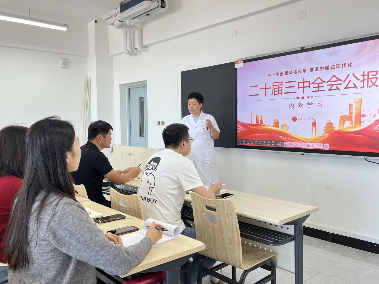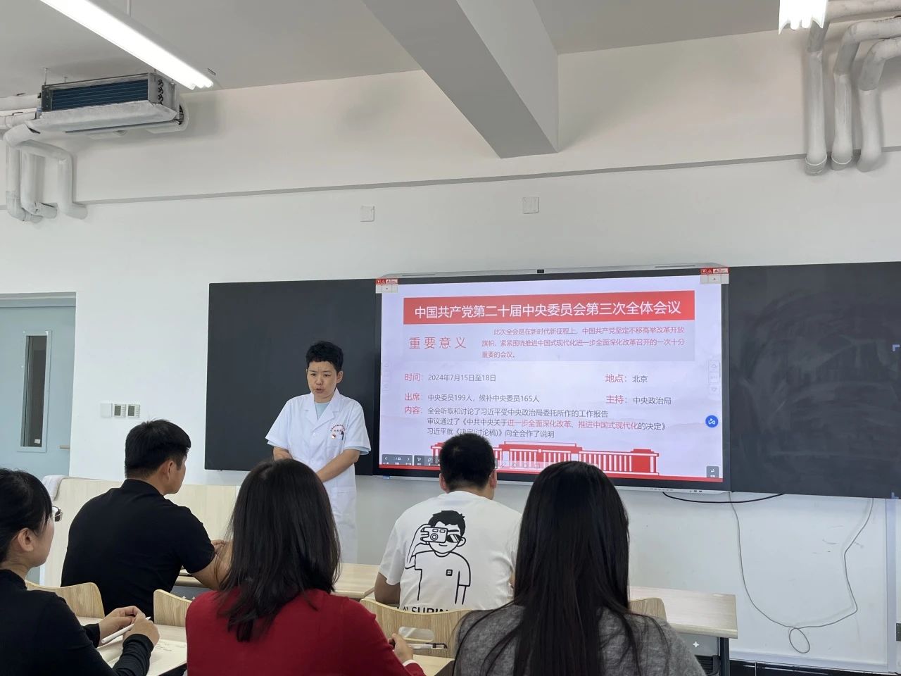 为深入学习贯彻党的二十届三中全会精神,推进学院各项工作高质量发展。9月26日,在4号教学楼护理产业学院党支部书记王珊紧紧围绕习近平总书记在党的二十届三中全会上的重要讲话和全会《决定》展开深入解读,学院全体党员参加。