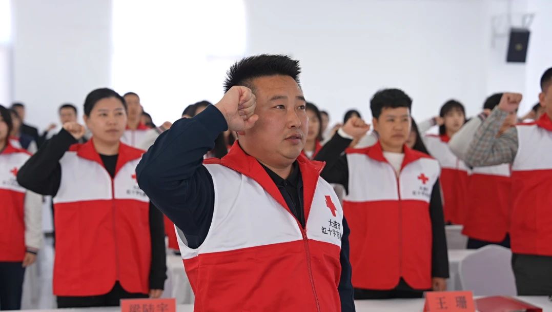 在授旗仪式上,大连市红十字会宣传部志愿服务队负责人孙磊为“大连枫叶职业技术学院护理产业学院红十字志愿服务队”授旗,“大连市最美退役军人”“大连好人”范大振带领百余名学生志愿者庄严宣誓。该队伍将聚焦社区服务、赛事保障、校园急救等场景,以专业能力践行“人道、博爱、奉献”的红十字精神。负责人表示,高校志愿力量的加入,将为大连市公益服务注入青春动能,推动“人人学急救、急救为人人”的社会风尚形成。护理产业学院党支部书记、院长王珊,护理产业学院学生副院长孙永海,护理产业学院教学副院长翟德宇、护理产业学院团总支书记梁陆宇出席仪式,共同见证志愿服务力量的集结。