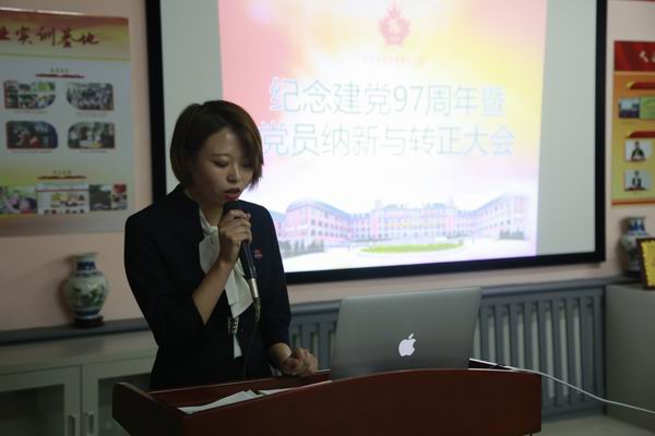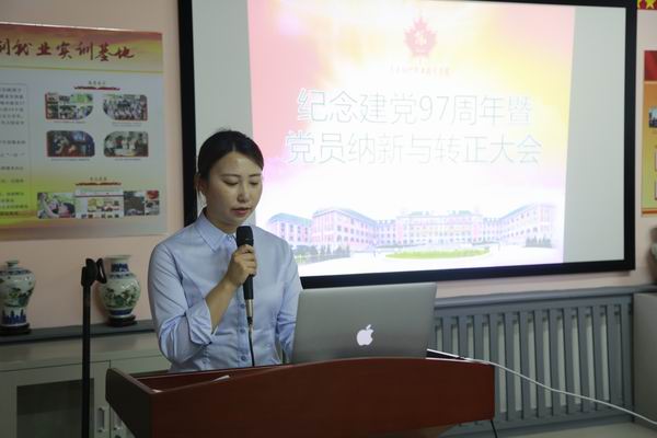 在建党97周年来临之际,为进一步增强组织的凝聚力和战斗力,激发全体党员的工作热情与活力。2018年6月26日,学校党支部召开纪念建党97周年暨党员纳新与转正大会。党支部书记、副院长申秀梅,宣传委员、副院长解建国等39名党员参会。