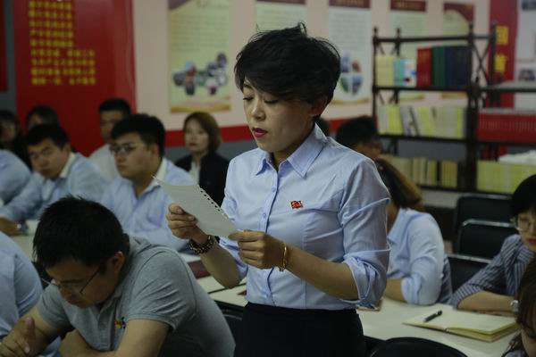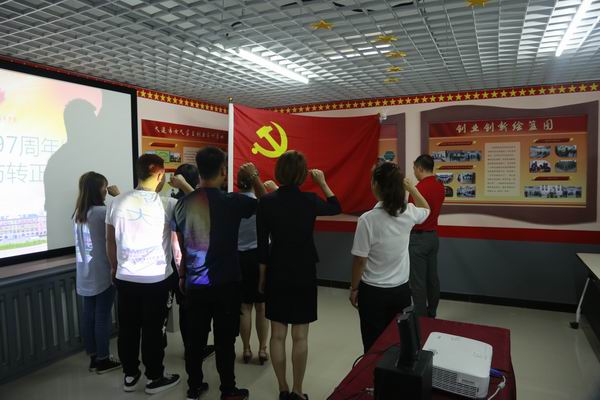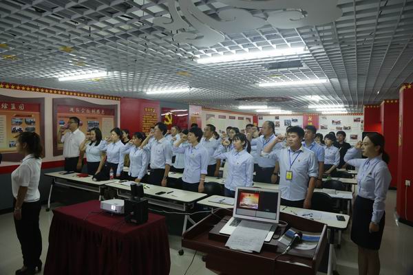 会议最后,由解建国同志领誓,2名预备党员在鲜红的党旗下庄严宣誓,全体党员重温入党誓词“我志愿加入中国共产党……”,一声声铿锵豪迈的誓言,表达出对党的无限忠诚与热爱。