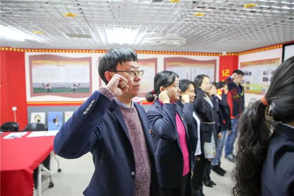 最后,周永福同志带领新接收预备党员姜占原等五名同志与所有党员在党旗下庄严宣誓。