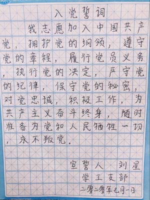 党员承诺:不忘初心跟党走,忠诚为校永争先。——刘星