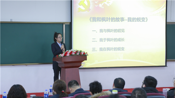 汇报会上,政体部党小组张淑萍以《我与社团一起成长的故事》为题,讲述了自己在带学生创建“飞鹰社团”,以为人师者一身正气方能言传身教,敢于拼搏,带领学生一同创业的故事;船舶与计算机系的辅导员于庆霞以“向上向善,做好自己,你若盛开 清风蝴蝶一起来”的理念,将思想政治教育与专业教育相结合的工作方法,讲述《我的全能型辅导员的故事》;招生就业党小组薛飞以“脚踏实地,立足本职,面临挑战,勇于担当”为主题讲述了《我与网络中心的故事》;船舶与计算机系的辅导员高源以《如何从创业的视角开启学生的成长之路》分享了自己从教学改革入手,把学生注意力引导到学习上来的故事;通关系辅导员崔璨在汇报会上说到“每一个学生都是一个天使,只是有的翅膀折了,需要老师来还他们一双飞翔的翅膀”,赋予自己为学生要重建心灵凤凰涅槃的使命;机关党小组隋琛珂则以《我与枫叶共同成长》为题,用机关青年的视角,诠释自己在平凡岗位上,对发挥党员先锋作用,恪尽职守、坚守职业道德,为学院的发展贡献全部力量,为学院的辉煌努力奋斗的理解。……这些坚守和奋战在不同工作岗位上的党员事迹,深深打动着每一名在场观众,台下不时响起热烈的掌声。