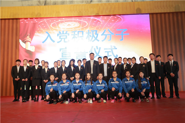 仪式上,党支部书记申秀梅发表讲话,她指出我们的党自1921年成立以来,96年的风雨兼程铸就了今天的辉煌,我们的祖国在党的领导下,日益走向繁荣昌盛。此次隆重举行吸收入党积极分子仪式,是为让全体与会人员牢牢记住这一重要时刻,从入党积极分子到成为一名合格的中国共产党党员,还有很长一段的距离。她对入党积极分子提出三点要求:一是要加强学习党章党规,增强对党的认识,在政治上思想上,向合格党员靠拢;二是在各项活动当中,要以党员的标准严格要求自己,处处身先士卒,充分发挥一个入党积极分子的先锋模范作用,团结周围的同学共同进步,在行动上向合格党员靠拢;三是要努力学习专业文化知识,提高专业技能,提高自己的综合素质,掌握服务社会和报效祖国的本领。