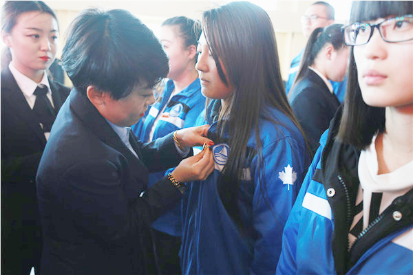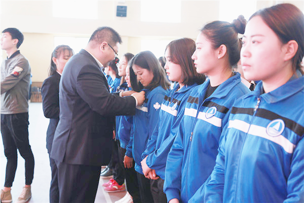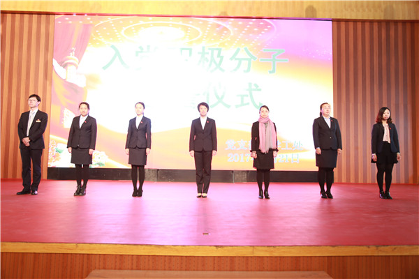 2017年4月21日上午11时40分,大连枫叶职业技术学院入党积极分子宣誓仪式在学校综合馆正式举行。党支部书记、执行校长申秀梅、副校长金晓晖、党支部组织委员聂俭丽、党小组组长和党员教师共计46人出席。仪式由学工处处长高成林同志主持。