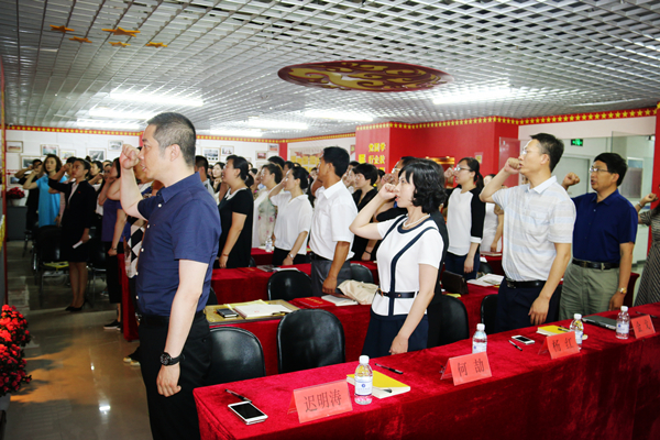 随后,全体党员举起右手,面向鲜红的党旗在大连新港通关技工学校支部委员的带领下,庄严宣誓、重温入党誓词。在这神圣的一刻,再一次净化和升华党员的心灵,唤醒了共产党员党性觉悟,强化了宗旨观念、增强了践行誓词的自觉性。