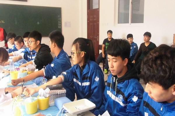 枫叶学子把血献,积极分子爱无边。