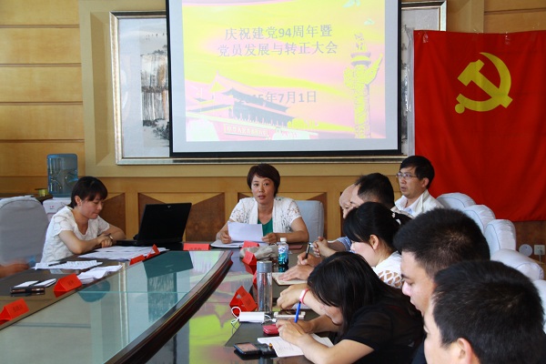 2015年7月1日中午12点,我院党支部在1号教学楼2楼会议室召开了纪念中国共产党建党94周年暨党员发展与转正大会。会议由党办主任聂俭丽主持。
