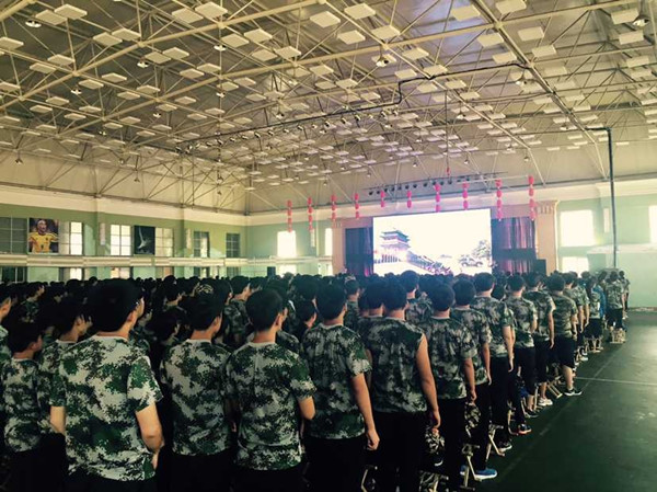 2015级新生在综合馆观看阅兵仪式
