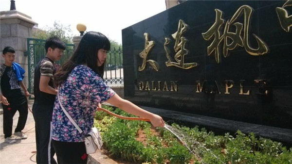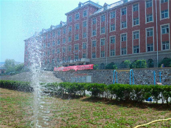 为学院的中心花坛浇水