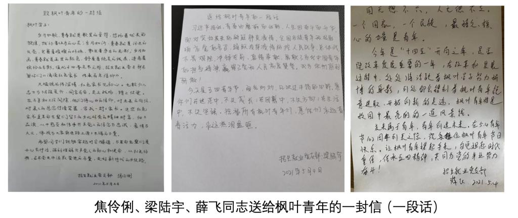 为纪念“五四”爱国运动102周年,引导学校青年充分发挥先锋模范作用,发挥招生就业党支部引领作用,招生就业党支部举办“送给枫叶青年的一封信”活动。
