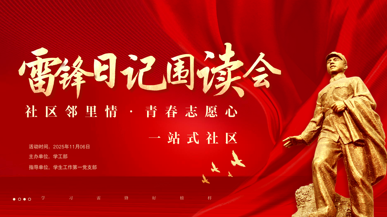 本期“社区邻里情·青春志愿心”雷锋日记围读会的圆满落幕,为学生工作第一党支部“党建+社区+思政”融合育人模式的探索,增添了坚实实践成果。展望未来,“一站式”社区将以雷锋精神为重要引领,推动其深度融入学生日常管理与服务各环节,让红色信仰在社区沃土扎根生长,为培育有理想、敢担当、能吃苦、肯奋斗的新时代青年持续注入红色动能。